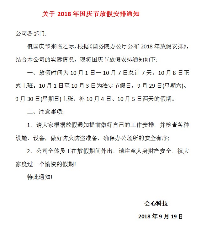 首頁(yè)新聞動(dòng)態(tài)最新簽約2018年國(guó)慶節(jié)放假通知