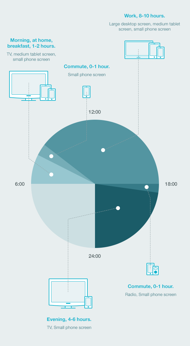 不同的設(shè)備組合通常是基于不同的場(chǎng)景、需求和服務(wù)來構(gòu)成的,用戶會(huì)針對(duì)不同的屏幕進(jìn)行不同模式的交互,甚至處理的內(nèi)容也會(huì)有差異。比如說,在手機(jī)上,用戶更加傾向于使用輕量級(jí)的任務(wù),并且進(jìn)行一定量的溝通和交流。在平板上,用戶行為更多集中在內(nèi)容消費(fèi)上,并且目前平板的使用量被認(rèn)為在逐步降低。桌面端依然是用戶完成較為專業(yè)、復(fù)雜任務(wù)的首選平臺(tái),足以應(yīng)付復(fù)雜多樣的內(nèi)容。了解各種設(shè)備類型和使用場(chǎng)景是用來構(gòu)建用戶體驗(yàn)的關(guān)鍵。