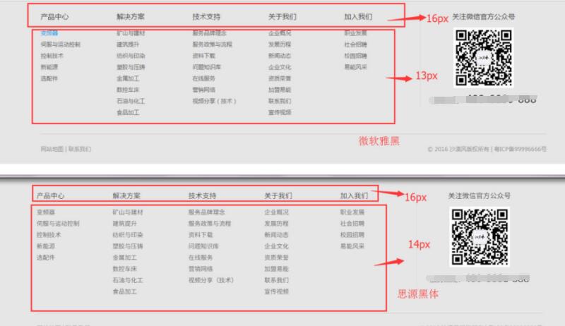 各種字體在網(wǎng)頁(yè)設(shè)計(jì)使用過程中,不一樣的字體同樣大小字號(hào)下,視覺的差異性非常明顯,如下圖對(duì)比: