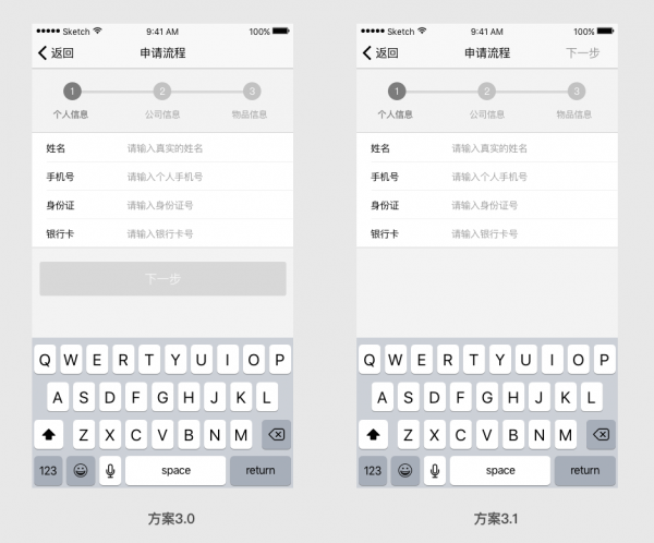 情況4:必填超過一屏,且無非文本輸入,建議可適用底部懸浮。