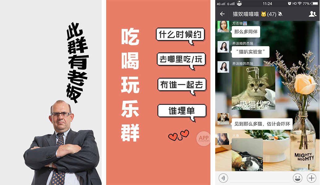 他們加入了很多同學(xué)群和興趣群,比如「貓奴喵喵喵