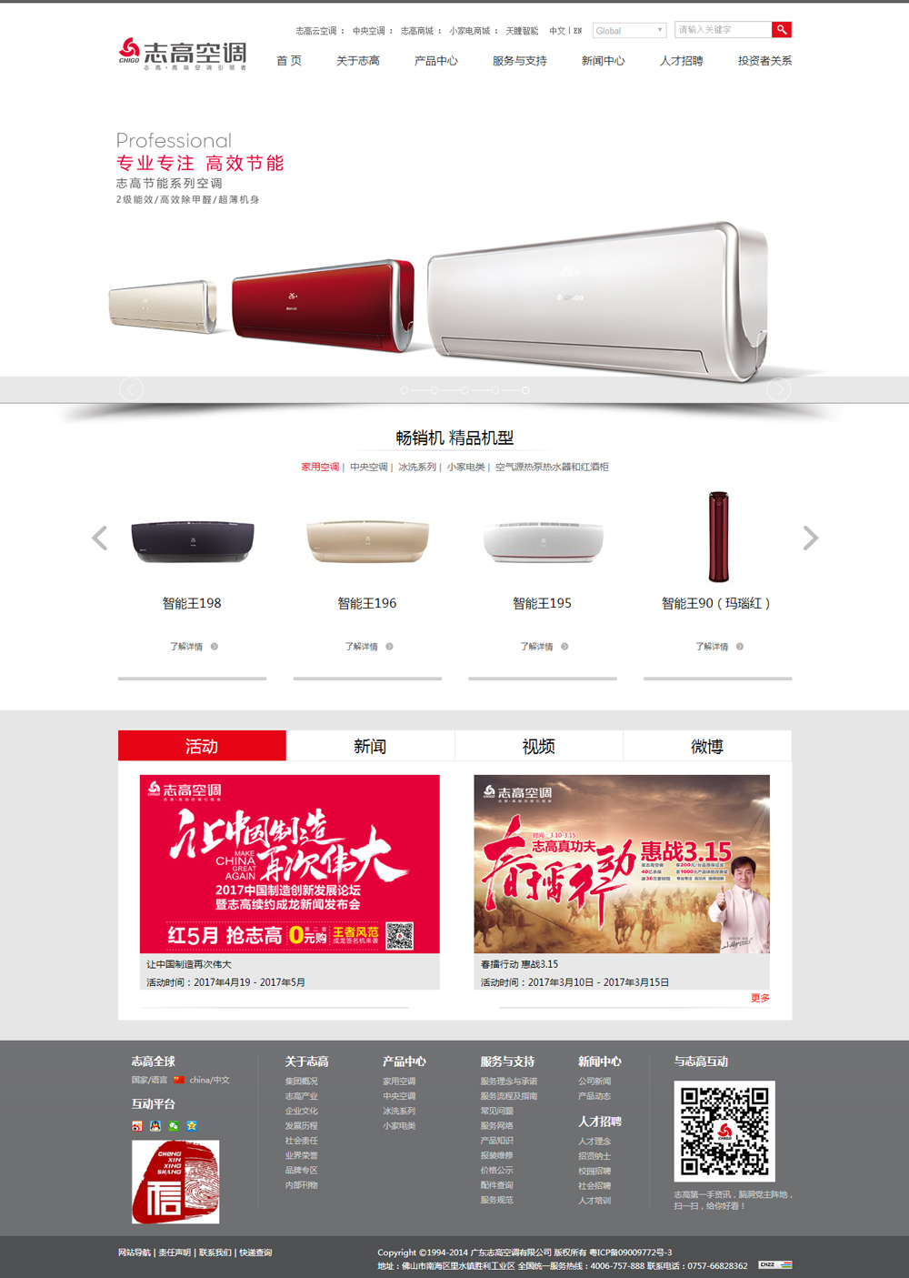廣東志高空調(diào)有限公司創(chuàng)建于1994年,系香港聯(lián)合交易所主板上市公司志高控股(股份代號:00449.HK)旗下核心企業(yè),總部位于珠江三角洲工業(yè)重鎮(zhèn)佛山市南海區(qū),集團產(chǎn)業(yè)涵蓋家用空調(diào)、中央空調(diào)、冰箱、洗衣機、制冷設(shè)備、生活電器等領(lǐng)域。經(jīng)過20余年快速穩(wěn)健的發(fā)展壯大,公司現(xiàn)擁有佛山、九江、四會等生產(chǎn)基地,完整的空調(diào)配套產(chǎn)業(yè)鏈及物流中心,家用空調(diào)年設(shè)計產(chǎn)能達1000萬套,是國內(nèi)擁有包括壓縮機在內(nèi)的最大最完整集群式空調(diào)產(chǎn)業(yè)鏈企業(yè)之一,業(yè)務(wù)遍及全球200多個國家和地區(qū)。自2005年至今,志高空調(diào)一直穩(wěn)居行業(yè)前列。