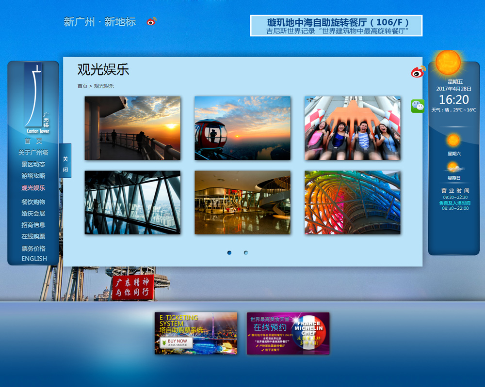 廣州塔是一座集都市觀光、時(shí)尚餐飲、至高游樂(lè)、影視娛樂(lè)、婚慶會(huì)展、環(huán)??破?、文化教育、購(gòu)物休閑等多功能于一體的、具有豐富文化內(nèi)涵的大型旅游觀光建筑,成功打造為一個(gè)世界一流水平的旅游景區(qū)。廣州塔采用了當(dāng)代最優(yōu)秀工程設(shè)計(jì)和最新施工技術(shù),以其獨(dú)特的建筑造型與世界新高度,依托其得天獨(dú)厚的旅游資源。