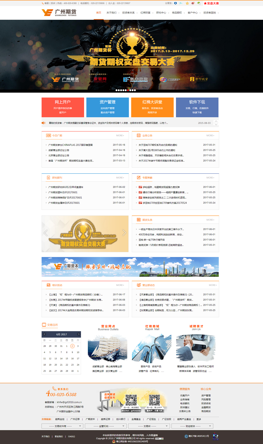 廣州期貨在全國各主要城市均設(shè)有營業(yè)部,基本形成了立足珠三角,輻射全國的經(jīng)營網(wǎng)絡(luò)。