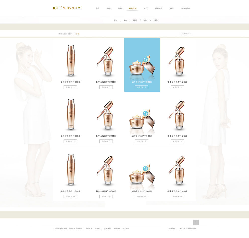 凱芙蘭是引領(lǐng)彩妝產(chǎn)業(yè)發(fā)展的革新性品牌。自巴黎正式問世來,凱芙蘭不斷融匯名師睿智,不懈進(jìn)取,融合夢(mèng)想與科技、生活與藝術(shù),以超群技藝與持續(xù)創(chuàng)新的傳統(tǒng),當(dāng)仁不讓地成為全球各地年輕一代女性心儀的品牌。凱芙蘭始終注重以法國式的風(fēng)格、品位為準(zhǔn)則,堅(jiān)持優(yōu)質(zhì)路線,力求通過時(shí)尚造型與質(zhì)感內(nèi)涵完美呈現(xiàn)消費(fèi)者的內(nèi)在氣質(zhì)。