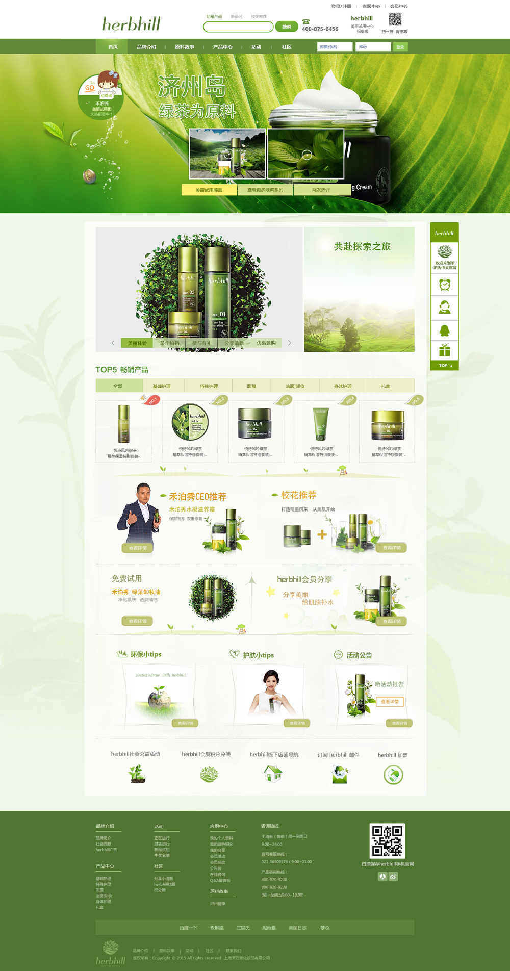 herbhill(禾泊秀)是韓國悅詩風(fēng)吟第四代和自然樂園品牌創(chuàng)始人鄭鐘仁先生針對(duì)中國新生代女性肌膚問題匠心研制的天然植物主義護(hù)膚品。在古代,禾泊是植物的意思,秀是山丘的意思,禾泊秀意指植物之丘。韓國濟(jì)州島優(yōu)質(zhì)的土壤、氣候和水令綠茶擁有最佳的生長環(huán)境。通過鄭鐘仁理事20余年從事化妝品的經(jīng)歷完成的herbhill(禾泊秀)是中國女性必備的綠茶成分保濕護(hù)膚品。綠茶成分是中國女性非常需要的肌膚美容水分平衡調(diào)節(jié)的天然原料......