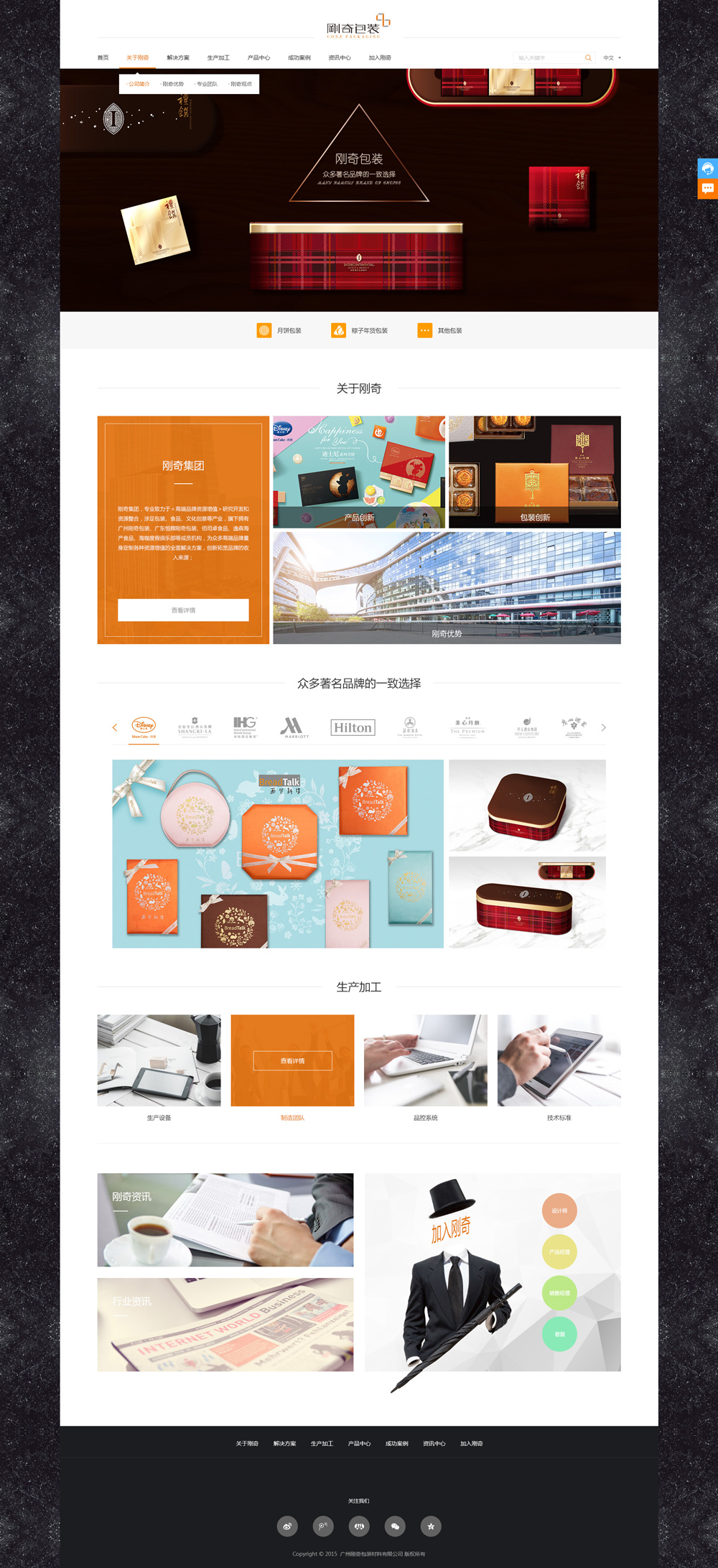 剛奇集團(tuán),專業(yè)致力于<高端品牌資源增值>研究開發(fā)和資源整合,涉足包裝、食品、文化創(chuàng)意等產(chǎn)業(yè),旗下?lián)碛袕V州剛奇包裝、廣東恒輝剛奇包裝、佰司卓食品、逸森海產(chǎn)食品、??Ф燃倬銟凡康瘸蓡T機(jī)構(gòu),為眾多高端品牌量身定制各種資源增值的全面解決方案,創(chuàng)新拓寬品牌的收入來源;集團(tuán)旗下剛奇包裝,是【包裝及產(chǎn)品創(chuàng)新】全面解決方案提供商,從事高端品牌的月餅、粽子、年貨等季節(jié)性商品和禮品領(lǐng)域,為客戶提供涵蓋市場調(diào)研、品牌升級(jí)、產(chǎn)品規(guī)劃、研發(fā)設(shè)計(jì)、包裝制造、營銷推廣的整體服務(wù),業(yè)已成為大中華地區(qū)<高端酒店自有品牌商品綜合解決方案>領(lǐng)先提供商,長期服務(wù)于香格里拉、萬豪、洲際、希爾頓、美心、廣州酒家等著名酒店餐飲集團(tuán),以及迪士尼、星巴克等世界著名品牌,專業(yè)服務(wù)備受行業(yè)客戶美譽(yù)。